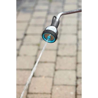 Der 90 cm lange Gardena Gießstab Premium ist für die Bewässerung von größeren Pflanzflächen oder -gefäßen und die Reinigung von entfernten oder schwer zugänglichen Bereichen geeignet. Dabei kann man zwischen drei verschiedenen Sprühbildern wählen – Sprühstrahl, Brausestrahl und Stechstrahl. Brausekopf und Anschlussstück am Gießstab sind mit Metallelementen versehen und extrem widerstandsfähig. Durch Weichkunststoffelemente wird der Gießstab Premium besonders griffig. Die ergonomische Auslösetaste und die stufenlose Regulierung der Wassermenge mit nur einem Finger machen die Handhabung besonders angenehm. Für die dauerhafte Bewässerung kann die Auslösetaste einfach festgestellt werden. Dank integriertem Frostschutz nimmt der Gießstab auch bei Frost keinen Schaden. Mit Hilfe der Aufhängemöglichkeit lässt er sich nach dem Gebrauch einfach und schnell verstauen.